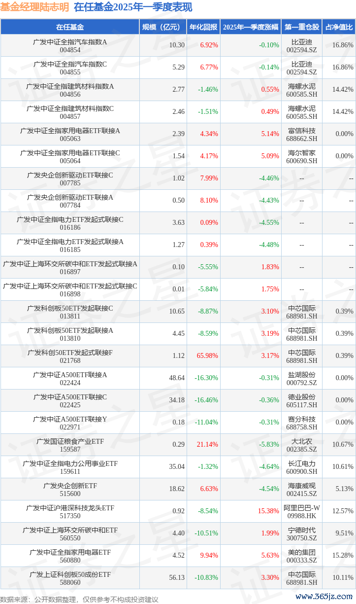 广发中证全指电力公用事业ETF现任基金经理为陆志明。其中在任基金经理陆志明已从业13年又327天,2021年12月29日正式接手管理广发中证全指电力公用事业ETF,任职期间累计回报为-4.29%。目前还管理着25只基金产品(包括A类和C类),其中本季度表现最佳的基金为广发中证沪港深科技龙头ETF(517350),季度净值涨幅为15.38%。