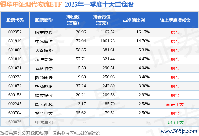 从基金规模来看,银华中证现代物流ETF基金2025年一季度公布的基金规模为0.72亿元,较上一期规模7167.81万元变化了20.29万元,环比变化了0.28%。该基金最新一期资产配置为:股票占净值比98.13%,无债券类资产,现金占净值比2.06%。从基金持仓来看,该基金当季前十大股票仓位达59.61%富深优配,第一大重仓股为顺丰控股(002352),持仓占比为16.17%。