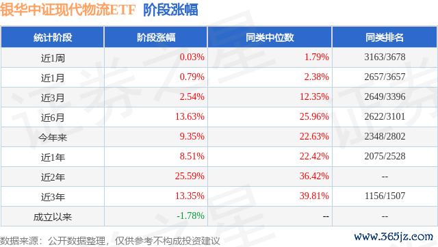 本站消息,日前银华中证现代物流ETF基金公布一季报,2025年一季度最新规模0.72亿元富深优配,季度净值涨幅为-2.76%。