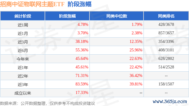 从业绩表现来看,招商中证物联网主题ETF基金过去一年净值涨幅为17.12%,在同类基金中排名737/2216,同类基金过去一年净值涨幅中位数为11.09%。而基金过去一年的最大回撤为-21.65%,成立以来的最大回撤为-44.48%。